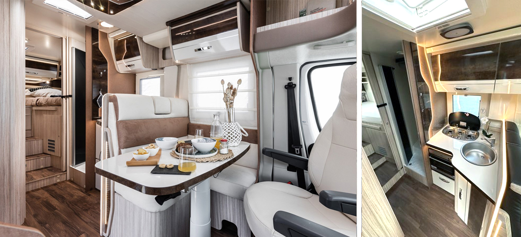 verstellbare Dinettensitze vervollständigen den teilintegrierten auf Ihren Reisen.